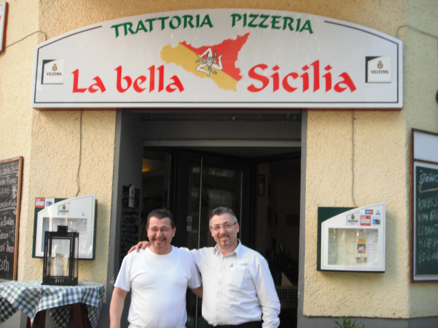 Die „Pizza Cuddruruni“ und dazu ein Gläschen Nero D’Avola an einem lauen Sommerabend. Was kann es schöneres geben.