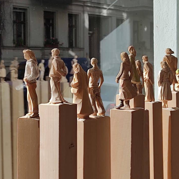 geschnitzte Portraits aus Holz